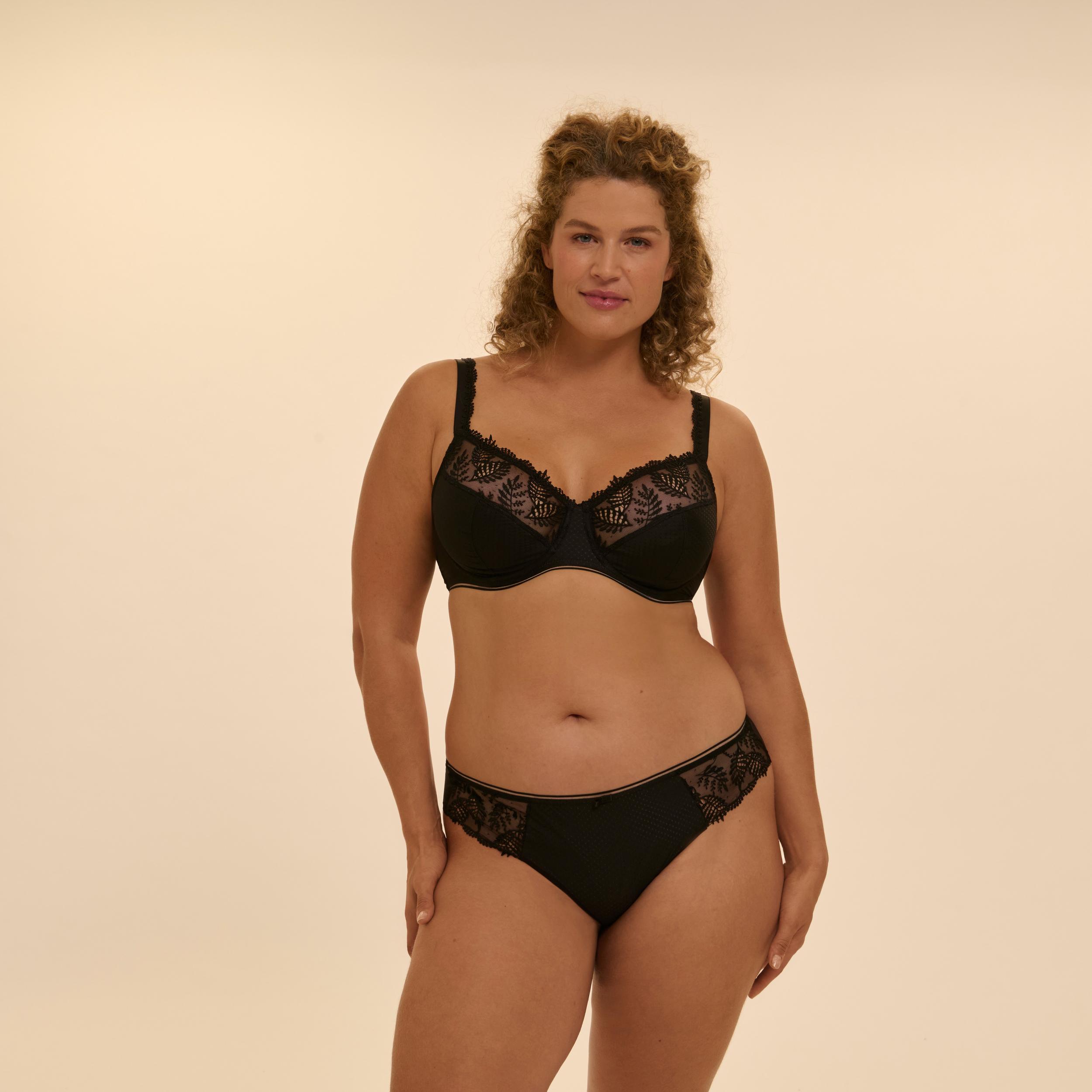 Nevyztužená podprsenka určena pro těžší poprsí, která zajistí maximální oporu. Osvědčený trojstřih, kde spodní část a boční vsuvka jsou z neprůsvitného, pevného materiálu, který je podšitý bavlnou pro vyšší komfort a horní část je z krajky, díky které podprsenka působí stále žensky.