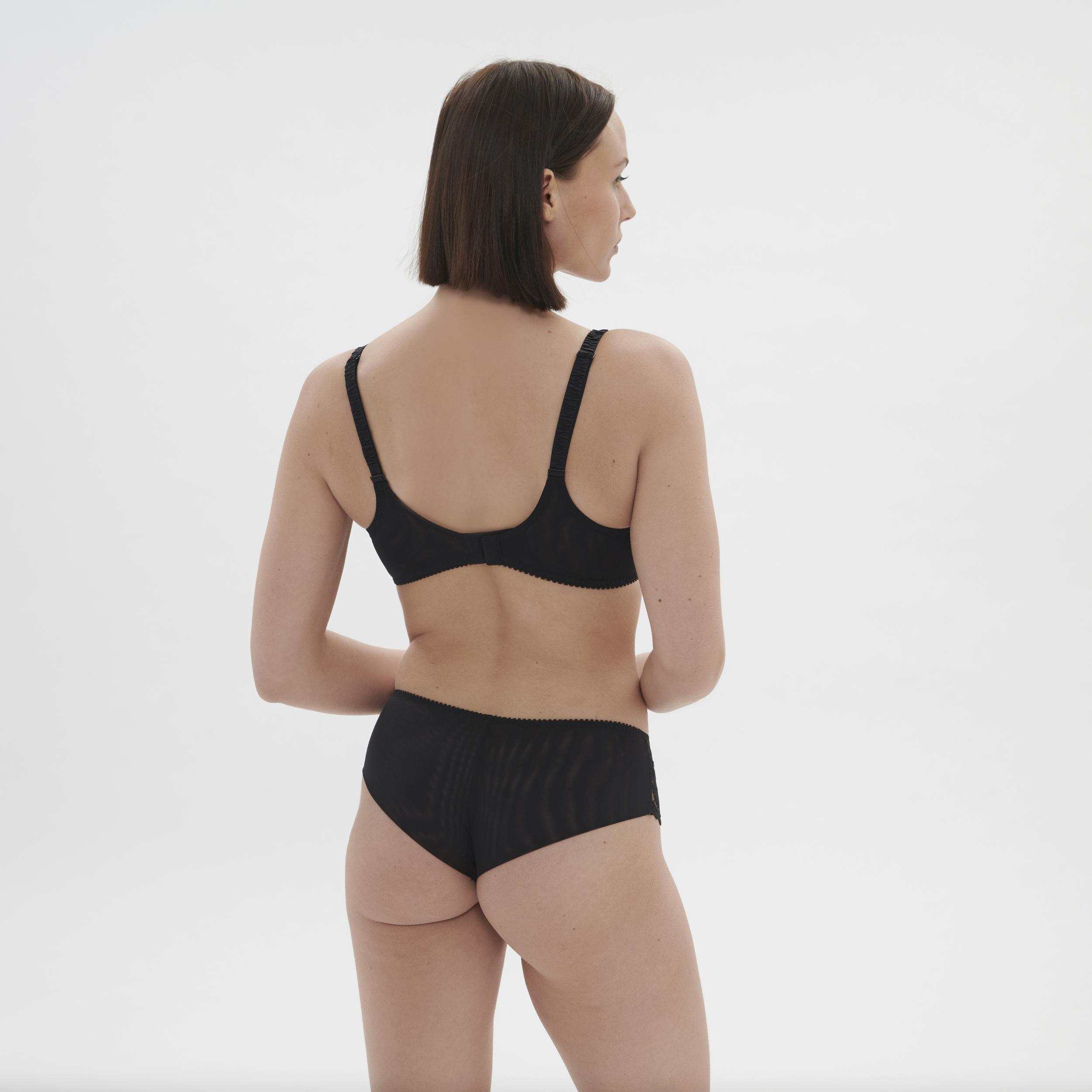 Nevyztužená podprsenka určena pro těžší poprsí, která zajistí maximální oporu. Osvědčený trojstřih, kde spodní část a boční vsuvka jsou z neprůsvitného, pevného materiálu, který je podšitý bavlnou pro vyšší komfort a horní část je z krajky, díky které podprsenka působí stále žensky.